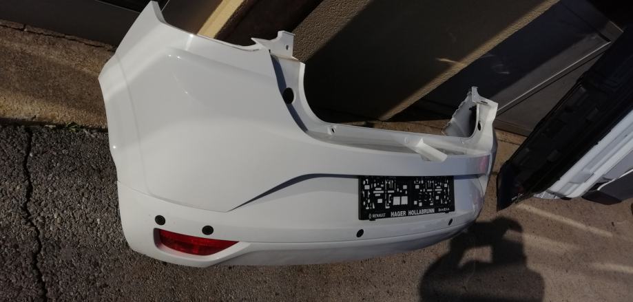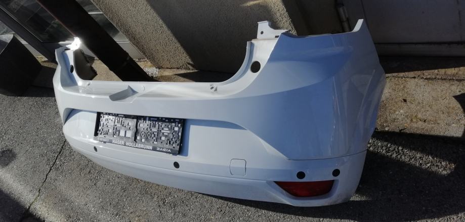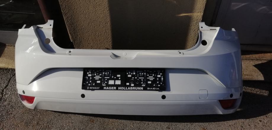 Branik stražnji, zadnji za Dacia Sandero III, u bijeloj boji, 6 parking senzora i 2 maglenke, el. instalacija senzora - maglenki i osvj.tablice