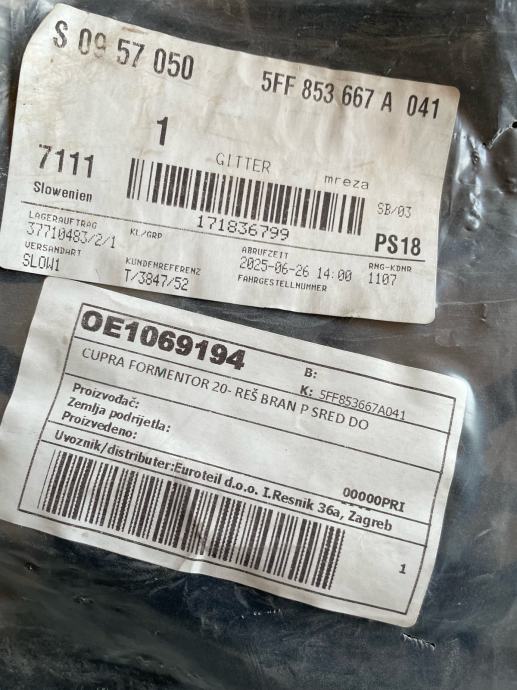 Prodajem novu srednju rešetku branika za Cupru Formentor.