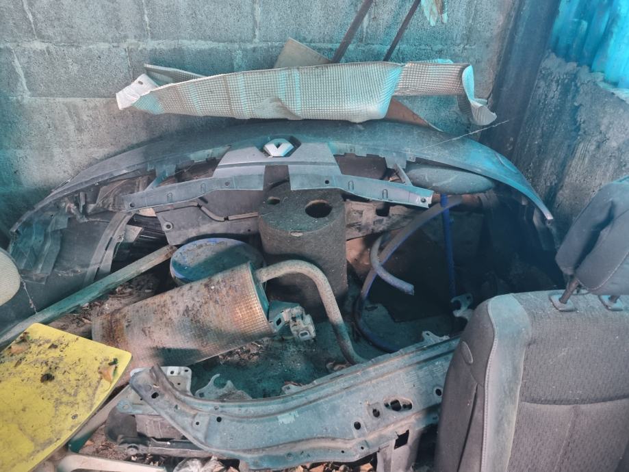 Prednji branik, prednja i stražnja greda iza branika, komplet auspuh, dijelovi ovjesa, amortizeri sa oprugama, cijevi klime, stražnja svjetla, prednji farovi koje bi trebalo polirati, ispravan kondenzator klime, ispravan kompresor klime, oplate vrata, razni sitniji dijelovi, nosači motora, sjedalo suvozača, stražnja hauba bez stakla i manje oštećena....sve zajedno 100 eura.