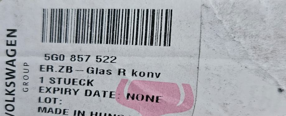 Prodajem orginalno rabljeno ispravno staklo desnog retrovizora (suvozačka strana) 5G0 857 522