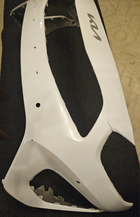 Original prednji KIA branik, u original bijeloj boji (nije farban) sa napuklinom na plastici u duljini od otprilike 10cm u kutu lijevog fara.