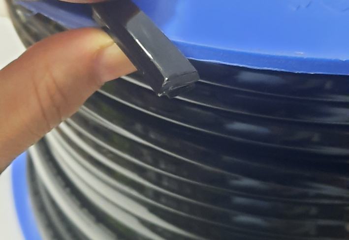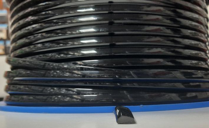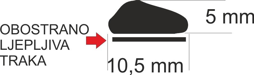 Crna plastična lajsna širine 10,5 mm, debljine 5 mm ima tvornički stavljenu
