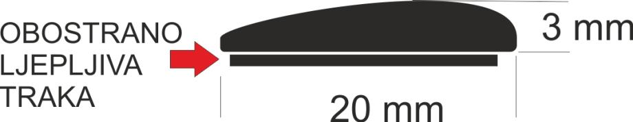 Kromirana plastična lajsna širine 20 mm, debljine 3 mm ima tvornički