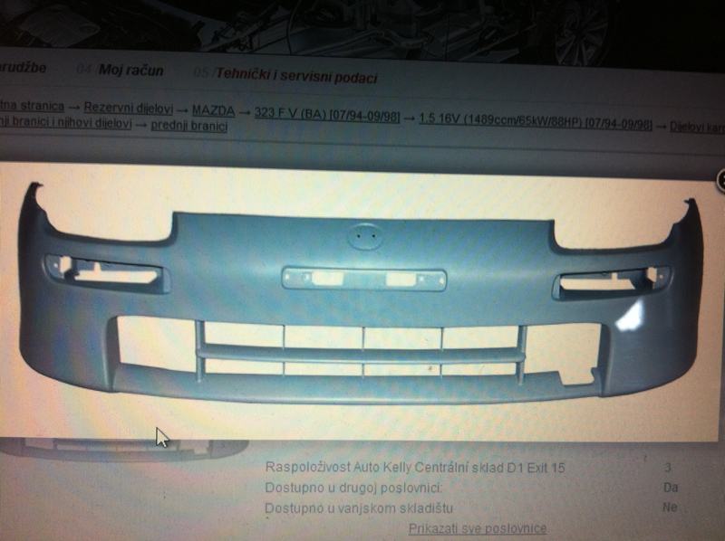 Prodajem prednji Branik i žmigavce u braniku za mazdu 323F 1994-1998 NOVO!!!!!