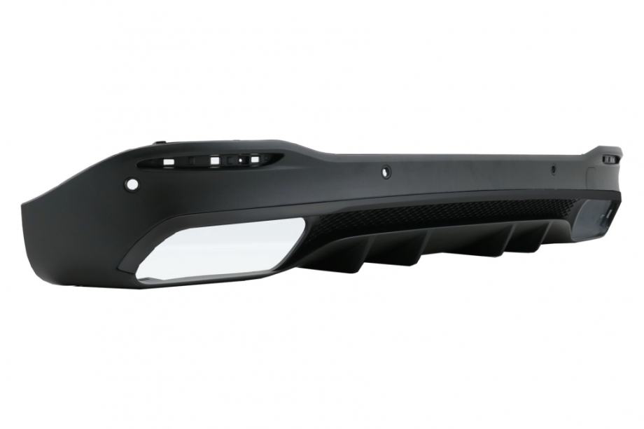 Difuzor zraka na stražnjem braniku izrađen od visokokvalitetne ABS plastike s dvostrukim otvorima za dvostruke vrhove prigušivača u mat crnoj boji.