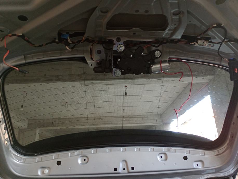 Sve je ispravno, samo je puknut nosač motorića brisača, te je zato zavezan žicom kako bih se staklo moglo zatvoriti.