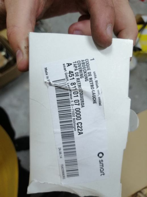 Prodajem Retrovizor prednji lijevi + kapu retrovizora lijevoga komplet original retrovizor naručeno novo ali nikad ugrađeno za vozilo Smart Fortwo 2011 god cabrio 451 NSF.