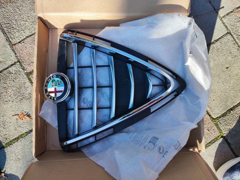 Prodajem originalni scudetto (prednja maska) sa znakom za Alfa Romeo Giuliettu. Rabljeno, ali bez ikakvih oštećenja – sve kopče i plastika su čitave, krom u vrlo dobrom stanju. Spremno za ugradnju. Cijena 70€.