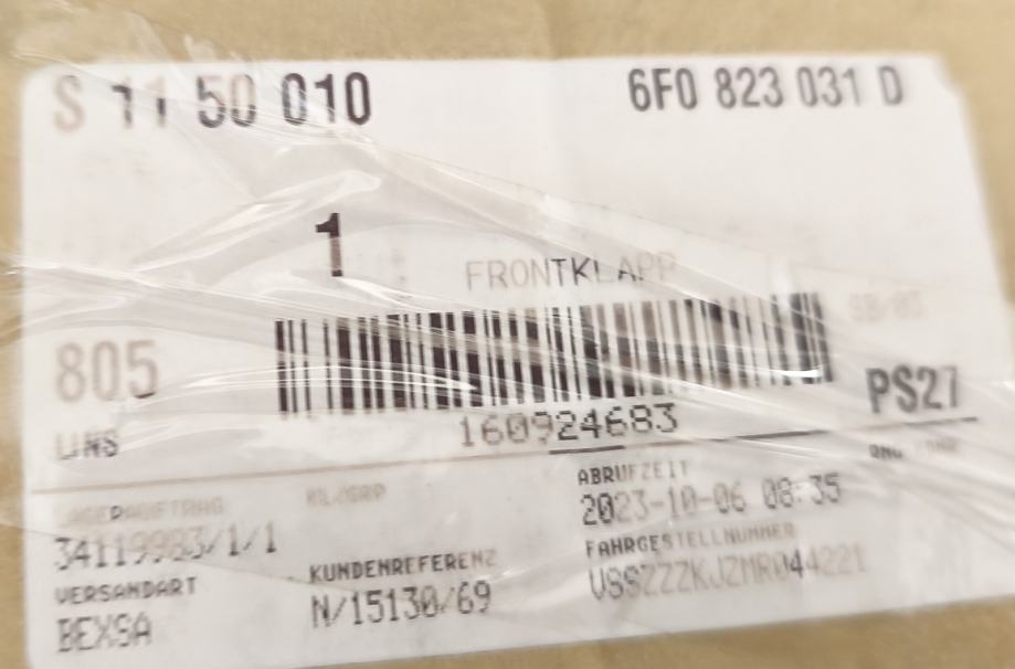 -KATALOŠKI BROJ HAUBE: 6F0823155A, 6F0823031D