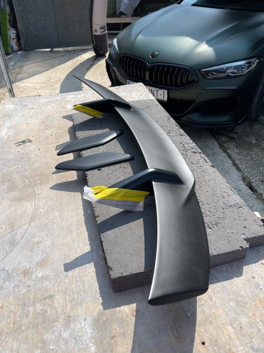 Spojler prtljaznika novi, mat crna boja (carbonski). Pase na sve aute. Raspakirano, prefarbano i nikad montirano.