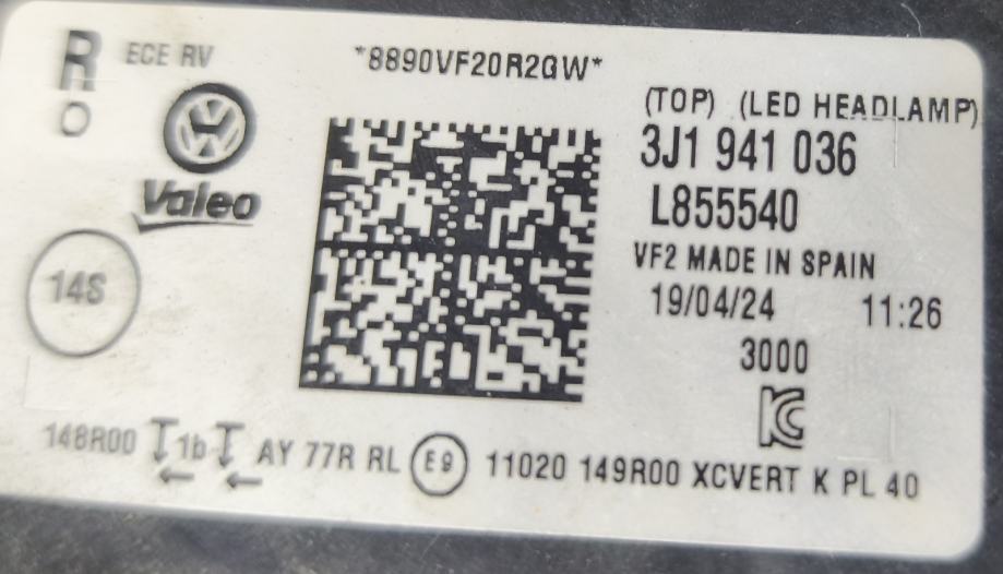 VW PASSAT B9 FAR DESNI LAMPA SVIJETLO DESNO FILL LED 23-.. 3J1941036