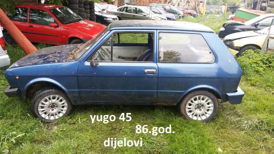prodajem od yuga 45 vrata bocna kompletna svaka 40€ prednja hauba 20€ gepek vrata sa staklom 40€ ima i drugih dijelova za taj auto slobodno nazovite i pitajte