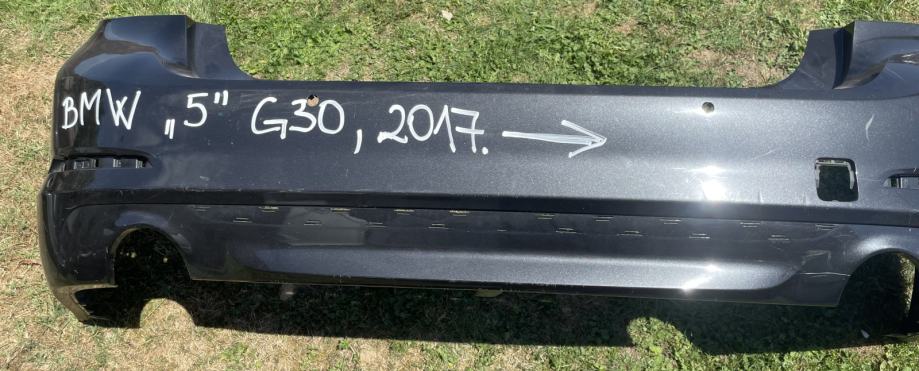 Zadnji branik za BMW seriju 5 G30, za modele od 2017. godišta. 4x rupe za PDC. U cijenu uključen difuzor. Tvornički broj 51127387294. Isporuka odmah!