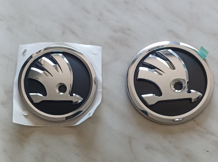 ZNAK ZA HAUBU ŠKODA OCTAVIA2, FABIA2, ROOMSTER, SUPERB, YETI - 90mm - ORIGINAL
