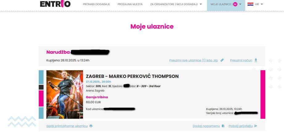 Prodajem 1 kartu za koncert Thompsona u Areni u Zagrebu 27.12.