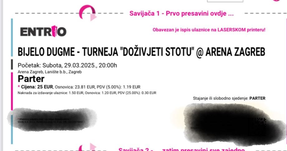 2 karte za koncert Bijelo dugme, Arena Zagreb, parter, subota, 29.3.2025