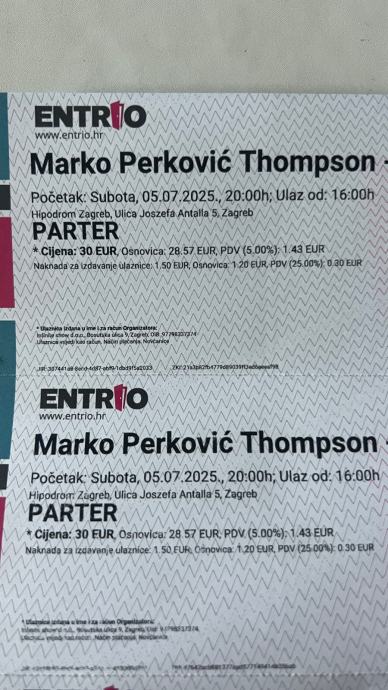 Prodajem 4 karte za koncert Thompsona na hipodromu