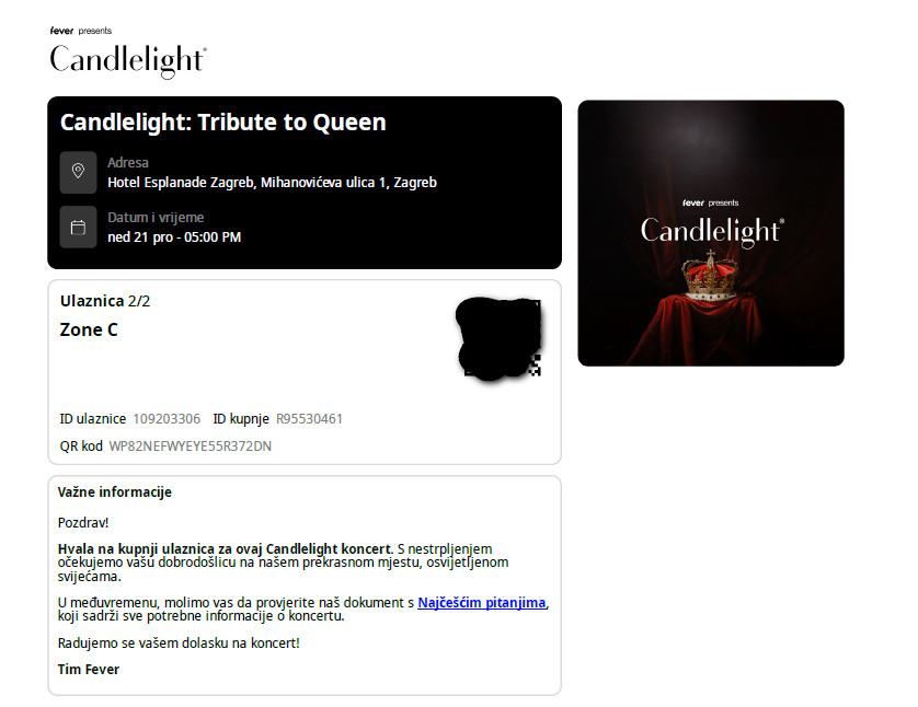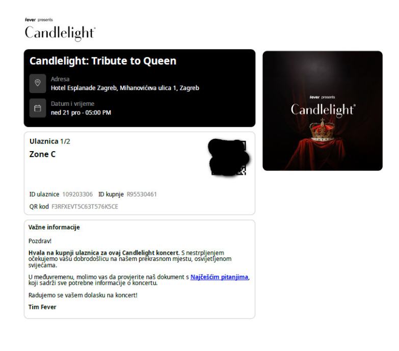 Prodajem 2 ulaznice za Candlelight: Tribute to Queen.