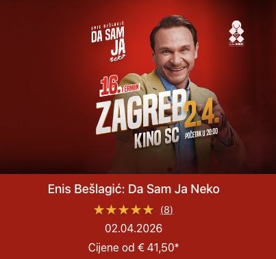Parket lijevo red 5, mjesta 3 i 4. Karte plaćene 80€. Ponudite u inbox. https://www.eventim.hr/event/enis-beslagic-da-sam-ja-neko-kino-sc-21317765/
