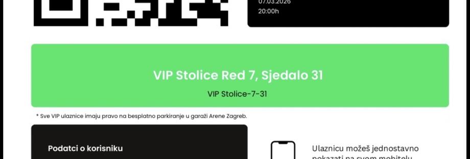 Prodajem 2 vip ulaznice za koncert Sergeja Cetkovica u Areni.