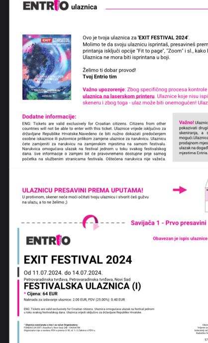 Prodajem kartu za EXIT festival, sve dane, koji se održava u 7. Mjesecu ove godine (2024). Karte su kupljene još u 12. Mjesecu no nismo u mogućnosti ići tako da ih prodajem.