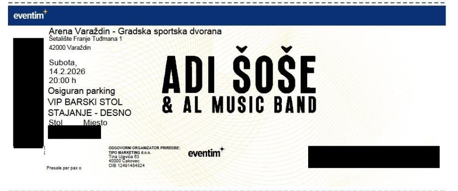 Prodajem 2 karte za koncert Adi Šoše 14.02.2026.