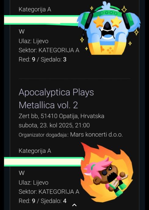 Prodaja dvije ulaznice u kompletu, Kategorija A, 150eur (75eur cijena pojedinačne ulaznice)