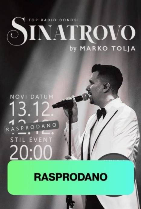 Dvije karte - parter za današnji koncert SINATROVO by Marko Tolja – nova prilika za večer punu glamura! Karte su bile 60 eura.