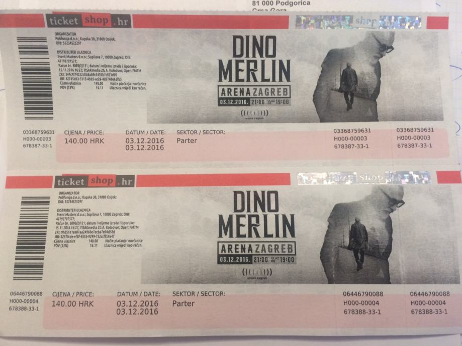 Prodajem 2 karte za koncert Dine Merlina , parter, cijena 140/kom - HITNO!