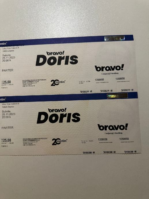 Prodajem dvije karte za koncert Doris Dragović u areni Zagreb, cijena je 100€