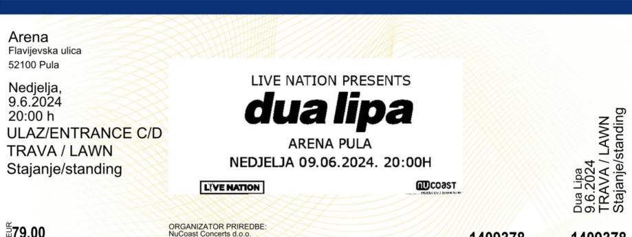 Prodajem jednu ulaznicu za travnjak za koncert Dua Lipe u Areni Pula u nedjelju 9.6.2024.