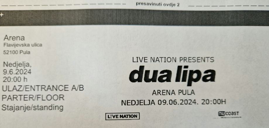 Prodajem kartu za koncert Dua Lipe u Pula areni 09.06.24