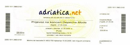 Prodajem dvije autobusne karte za prijevoz na koncert Depeche Mode 21.05.2009., od Pule do Zagreba i natrag.