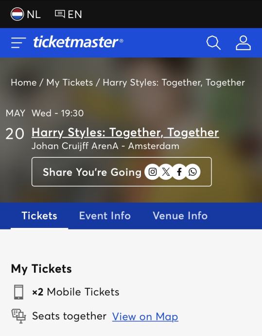 Prodajem dvije karte za koncert Harry Stylesa u Amsterdamu 20.5.2026.