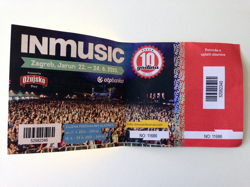 Trodnevna festivalska ulaznica. Cijena 40 €. PRODAJEM HITNO.