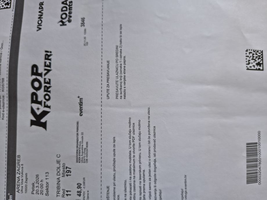 Dvije karte tribina dolje C red 11 zbog bolesti prodajem.