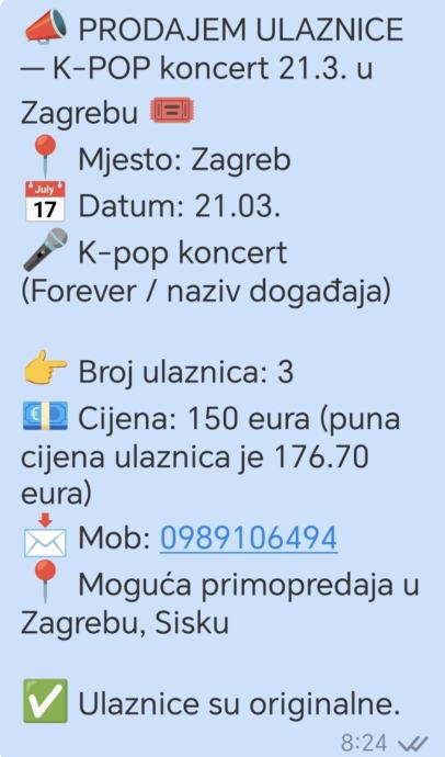Prodajem ulaznice po sniženoj cijeni!