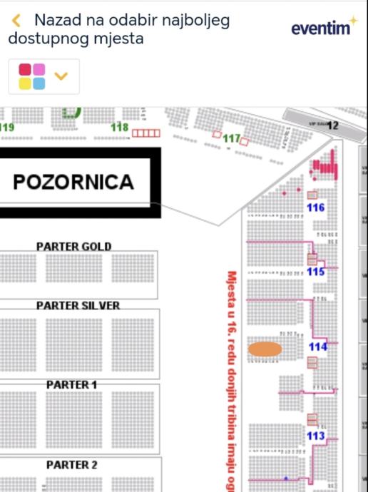 ARENA ZAGREB sektor 114, tribina dolje C, red 6,mjesto 176,177 i 178!