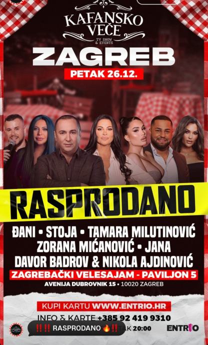 Prodajem 6 ulaznica za barski stol u prvom redu za Kafansko veče - Zagrebački Velesajam 26.12.