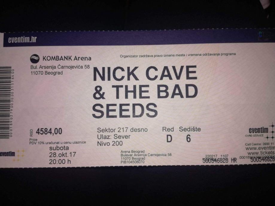 Karta za koncert Nick Cavea u Beogradu - 28.10.2017.g.