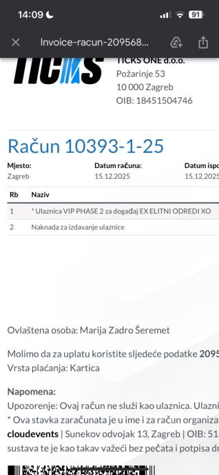 Prodajem kartu jer ne mogu ići zbog bolesti, trenutno je na stranici 16 eura. Ulaznica je online pa ju mogu odmah poslati.