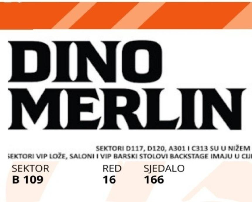 Prodajem 2 karte za koncert Dine Merlina u Areni Zagreb.