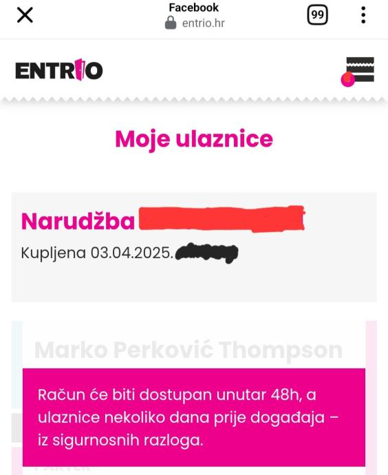 Višak karata za koncert MP Thompsona (10 kom). Cijena po komadu.