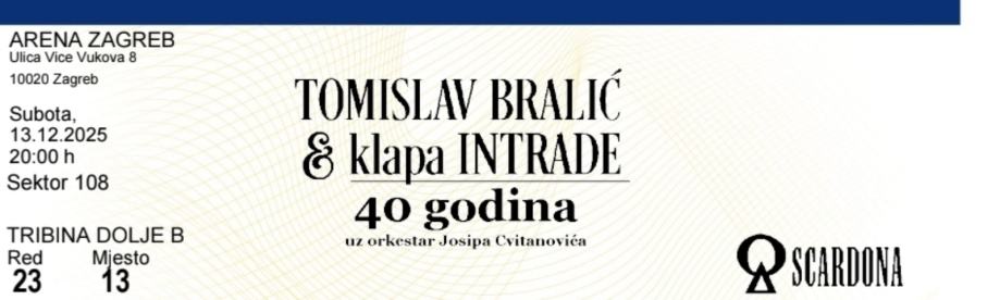 Prodajem 2 ulaznice za koncert Tomislava Bralića i klape Intrade 13.12.