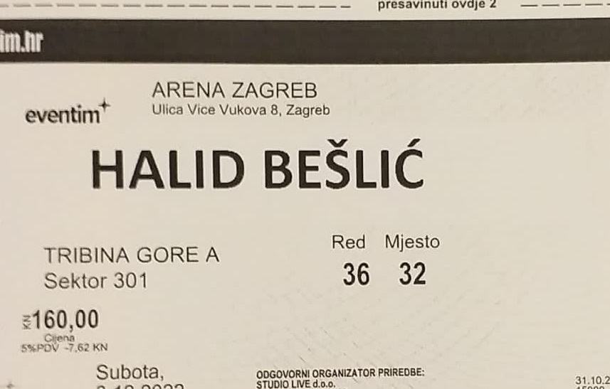 Prodajem 2 ulaznice za koncert Halida Beslica.