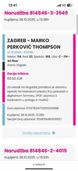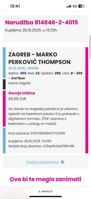 Prodajem karte za thomspona. 200e obje ulaznice