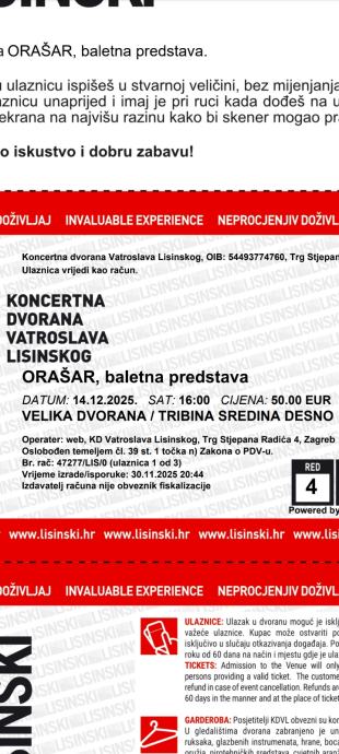 Prodajem tri karte za Orašara Lisinski u nedjelju 14.12.2025 u 16h.