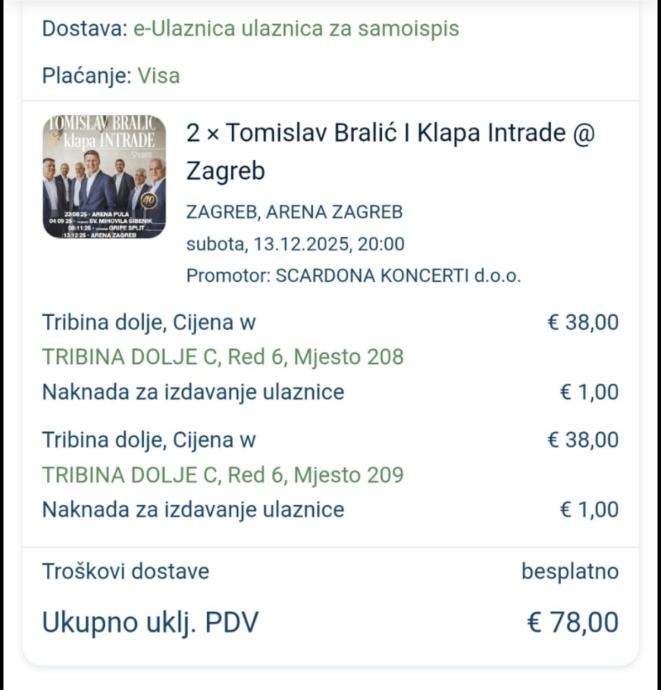 2 ulaznice za 13.12.