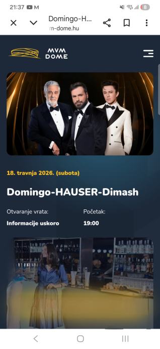 KONCERT: Domingo-Hauser-Dimash, Budimpešta 18.04.2026., 3 ulaznice