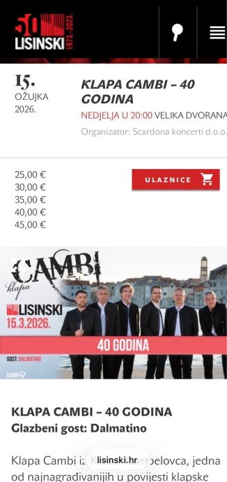 Prodajem 3 karte za koncert klape Cambi u Lisinskom, za 15.3.2026. parket sredina 5 red, po cijeni kojoj su i kupljene, 150 € za 3 karte
